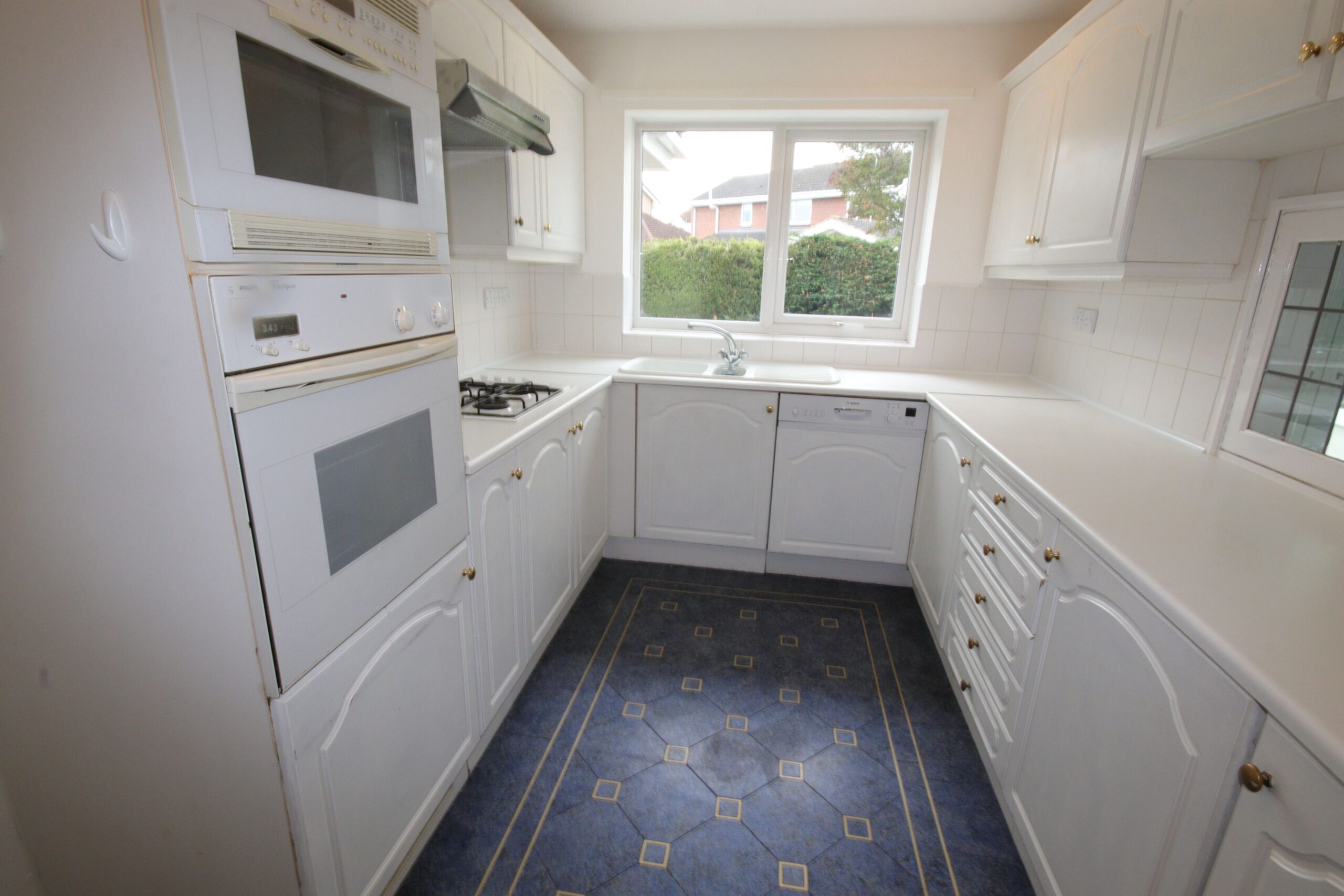 Good range of fitted units, base cupboards and drawers, one and half bowl composite sink unit with mixer tap, Philips Whirlpool built in oven, Philips built in microwave oven, Philips Whirlpool 4 burner gas bob, Bosch integrated dishwasher, partly tiled walls, radiator, Upvc framed double glazed window, recessed ceiling lights, Karndean flooring