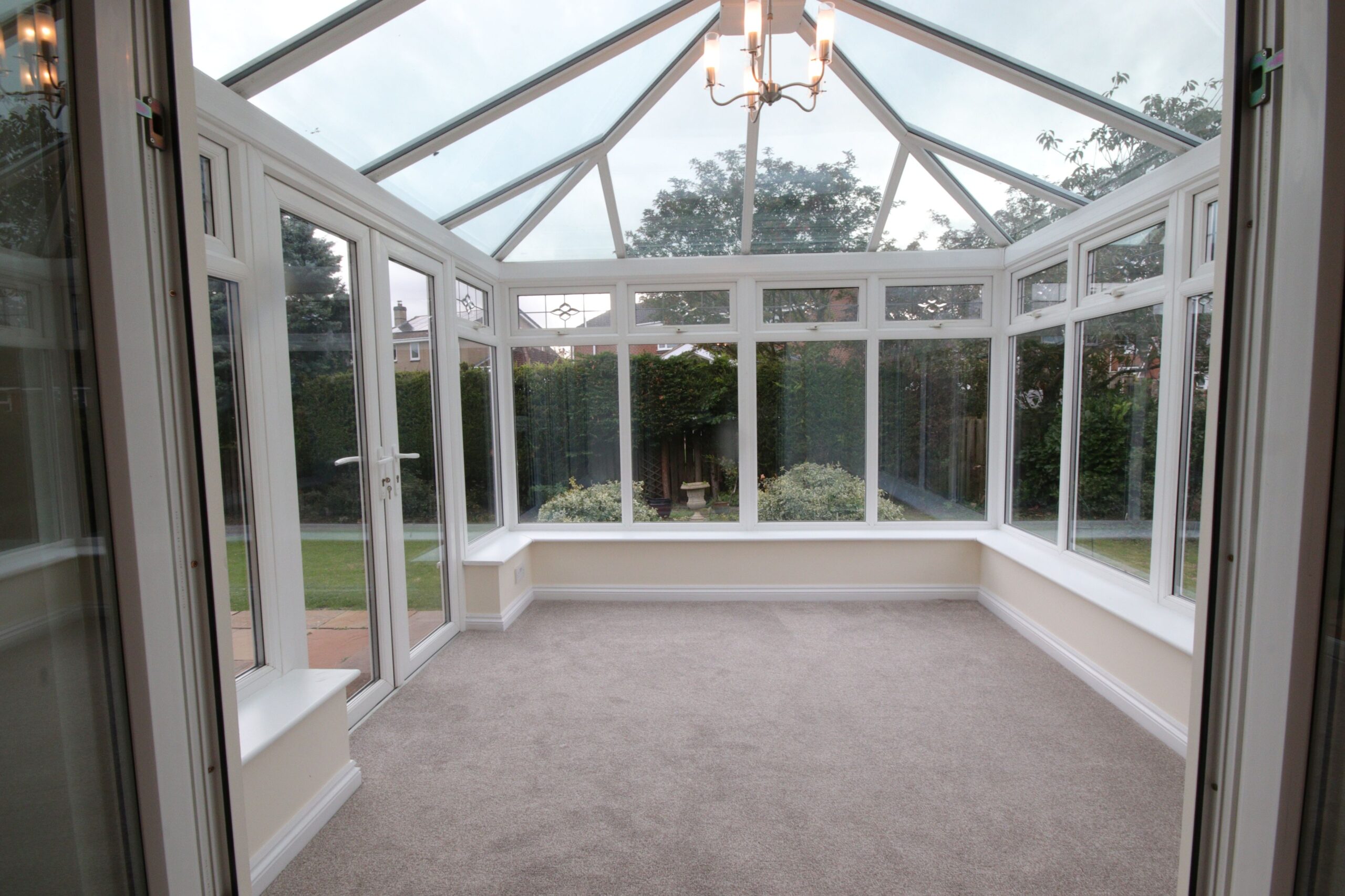 Upvc framed double glazed windows and roof, Upvc framed double doors leading to rear garden