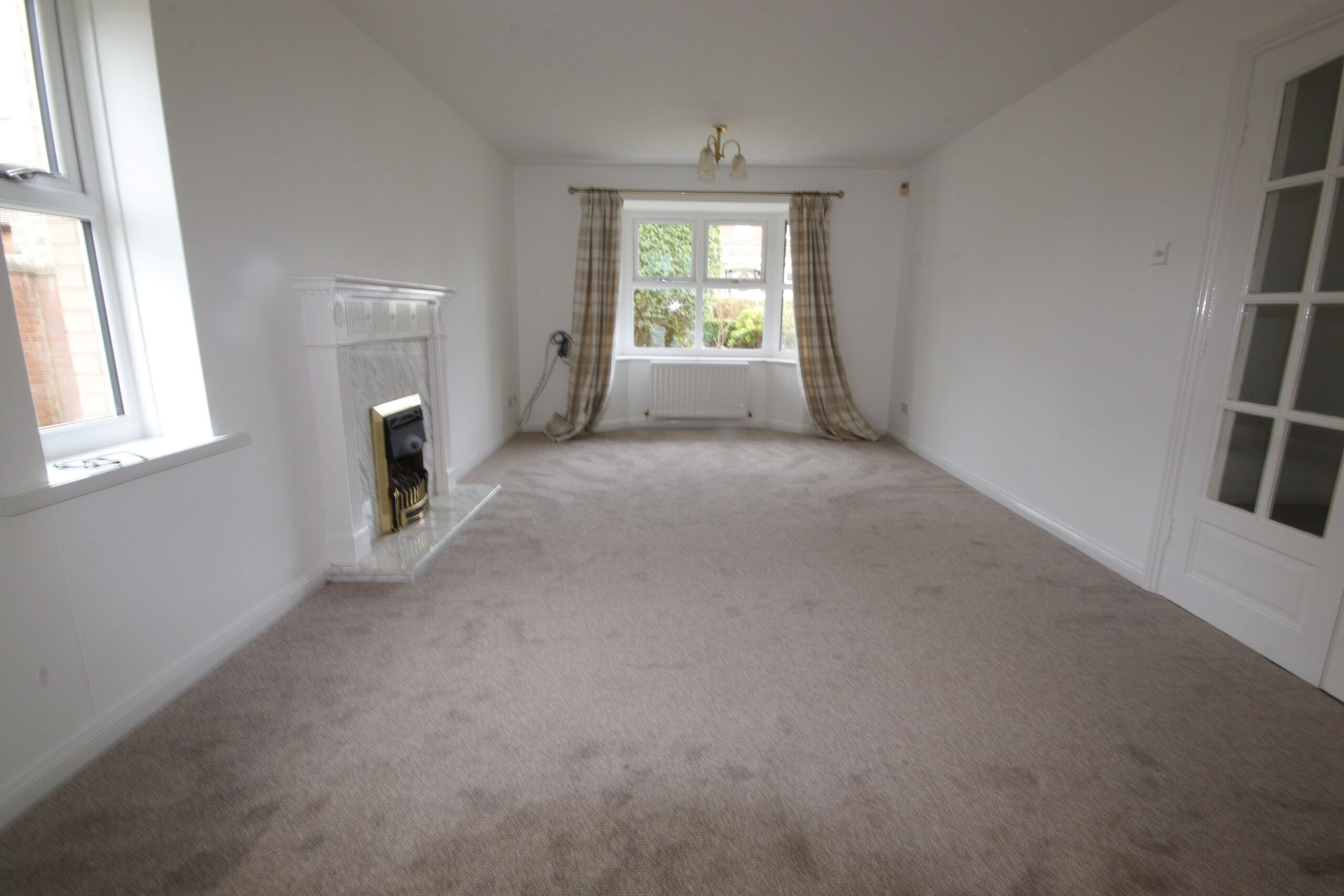 Plus Upvc double glazed bay window, Upvc framed double glazed side window, 2 double radiators, attractive fire surround with marble inset and hearth with living flame coal effect gas fire, squared arch to