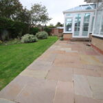 Paved path with step up to